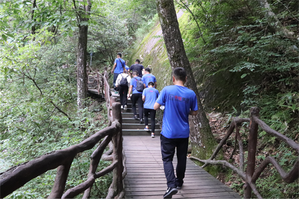 7月16日早上我們由合肥出發(fā),在到達(dá)美麗的天堂寨風(fēng)景區(qū)之后,經(jīng)過短暫的休整,中午我們進(jìn)行了本次團(tuán)建的第一項(xiàng)活動,就是攀登海拔1700余米的天堂寨主峰。