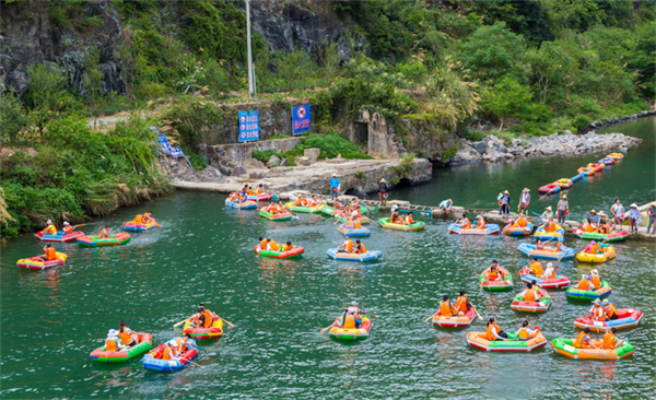 下午在徒步過后陶總還帶領(lǐng)大家體驗(yàn)了刺激的大別山漂流,大約2個小時的漂流路線,大家感受了一次激流勇進(jìn)的刺激,大家兩兩一船,時而劃船,時而潑水打鬧,玩的非常酣暢淋漓。
