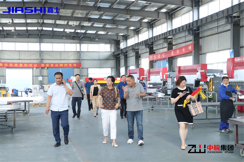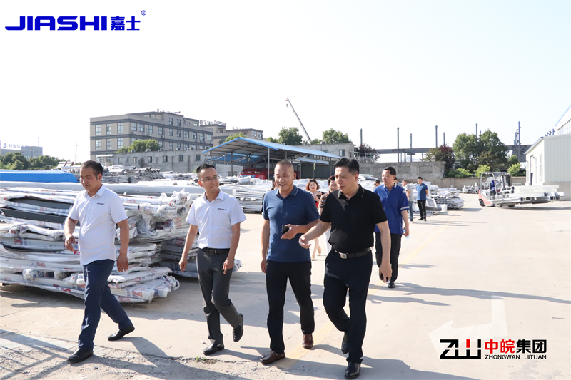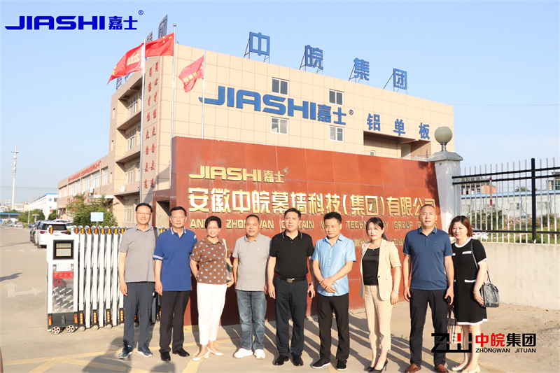 2022年6月17日安徽大劇院季總、張總等領(lǐng)導(dǎo)來(lái)到了中皖集團(tuán)旗下-安徽嘉士新型材料有限公司鋁單板生產(chǎn)基地。